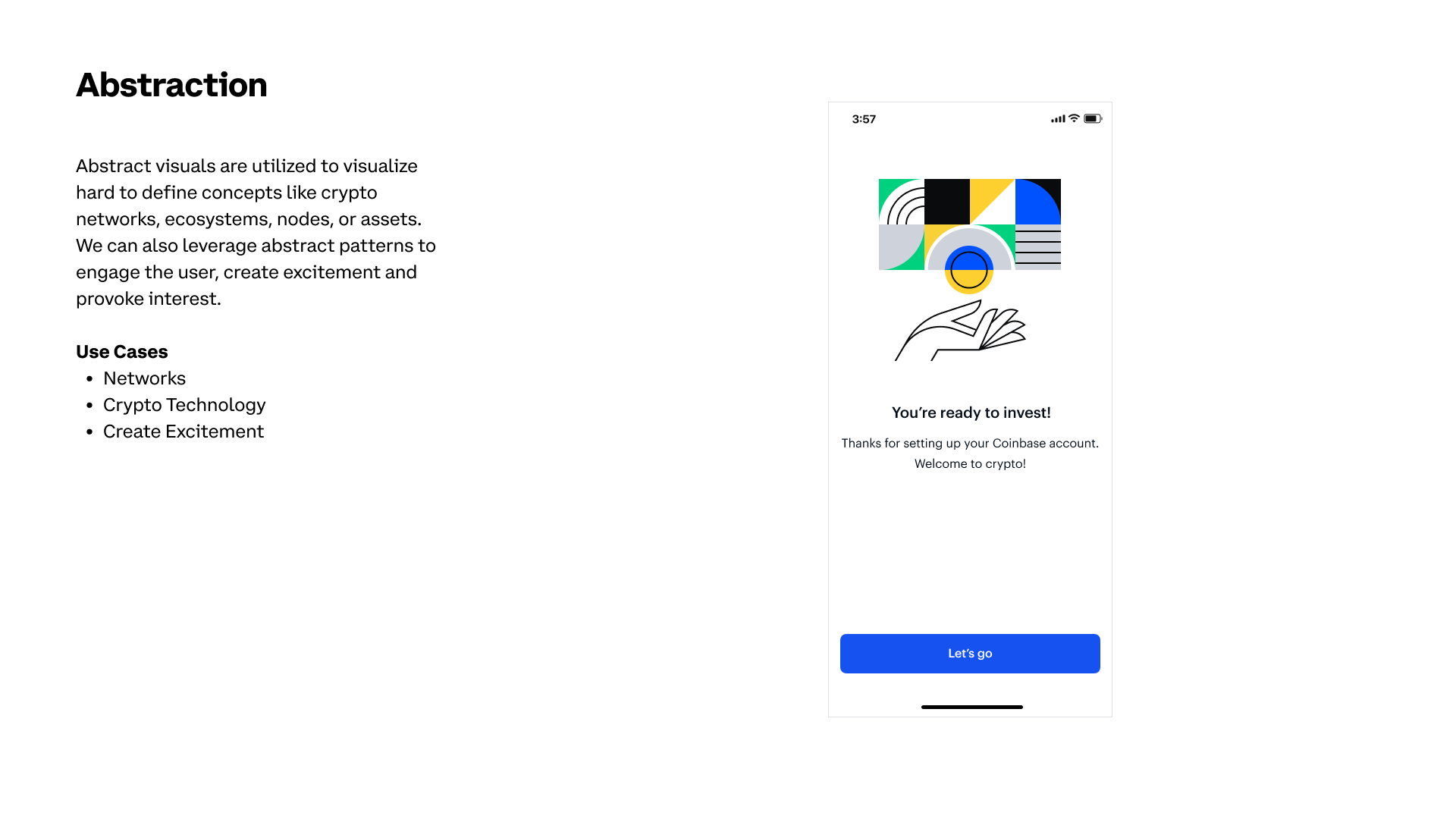 We’re Coinbase. We’re the world’s most trusted way to join the crypto revolution, serving more than 89 million accounts in more than 100 countries. Our mission is to increase economic freedom around the world, and we couldn’t do this without hiring the best people. We’re a group of hard-working overachievers who are deeply focused on building the future of finance and Web 3.0 for our users across the globe, whether they’re trading, storing, staking or using crypto. Know those people who always lead the group project? That’s us. But Coinbase still needed to refresh some brand elements, especially create Illustration Design System.